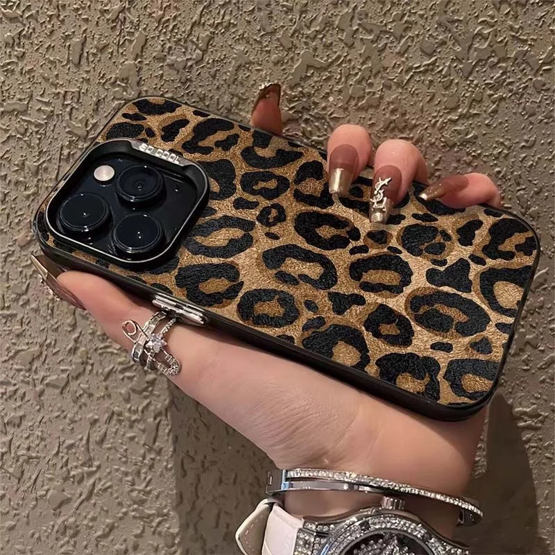 Leopard Print Phone Case For iPhone 16 13 15 14 11 12 17 Pro Max 16 Pro Max Shockproof Bumper Armour IMD Cover Funda Coque Shell